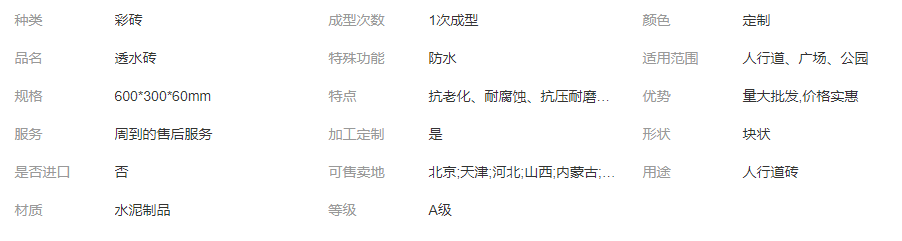 長期供應水泥磚透水磚 規(guī)格齊全 1次成型 人行道、廣場、公園 塊狀